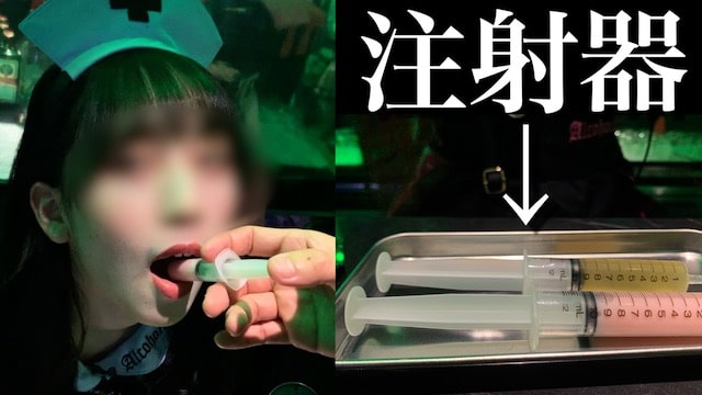 注射器でショットを飲ませるキャストドリンク(300TWD〜)。