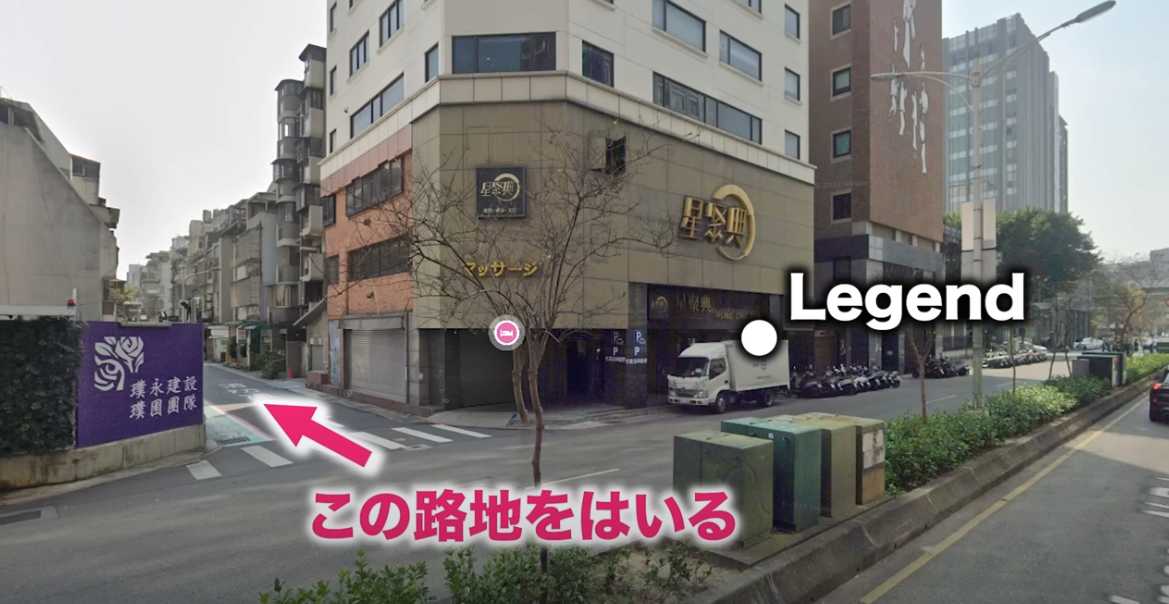 「レジェンド」という有名な持ち帰りキャバクラがある路地を入ったところ。