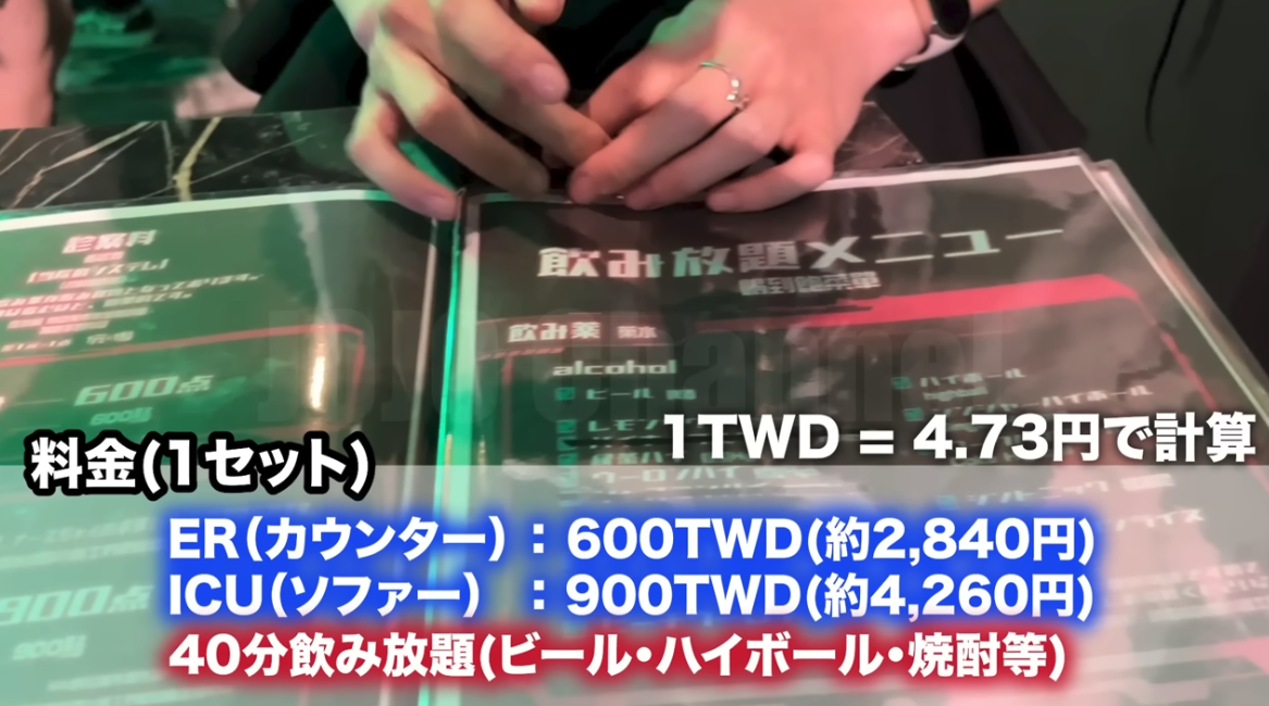 ※1setミニマムチャージ個室料込みで4,800TWD+ボトルキープ
